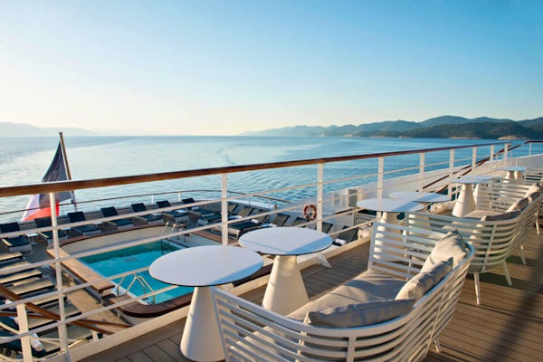 L’Austral offers itineraries that are impressive. She joined Compagnie du Ponant as a premium vessel in 2011, showing magnificent lines, elegance and furnishings that reflect modern French marine architecture. She is 4-star, “your own private yacht.” With 264 guests and 140 crew, service is personal.