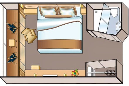 Stateroom size: 205 sq ft. Features - River-view stateroom with half-height picture window, Hotel-style bed 79 in x 63 in (with optional twin-bed configuration); luxury linens amp; pillows, Free Wi-Fi (connection speed may vary), 42quot; flat-screen TV with infotainment system featuring Movies On Demand, plus CNBC, CNN, FOX, National Geographic amp; more, 110/220 volt outlets amp; USB ports, Telephone, safe, refrigerator, hair dryer amp; individual climate control, Private bathroom with spacious glass-enclosed shower, heated bathroom floor amp; anti-fog mirror, Premium Freyjareg; toiletries; plush robes amp; slippers available upon request, Bottled water replenished daily, Stateroom steward amp; twice-daily housekeeping, Space under bed for storing suitcases, Roomy wardrobe with wooden hangers.